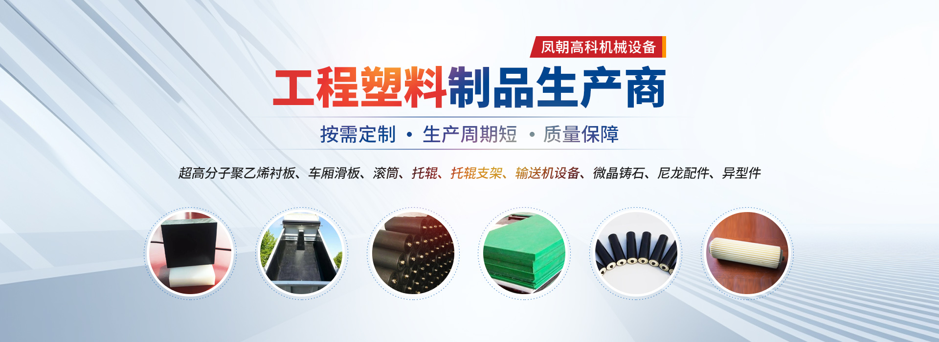 主營生產(chǎn)輸送機(jī)、襯板、托輥、支架、耐磨陶瓷、滾筒及其它系列工程塑料產(chǎn)品